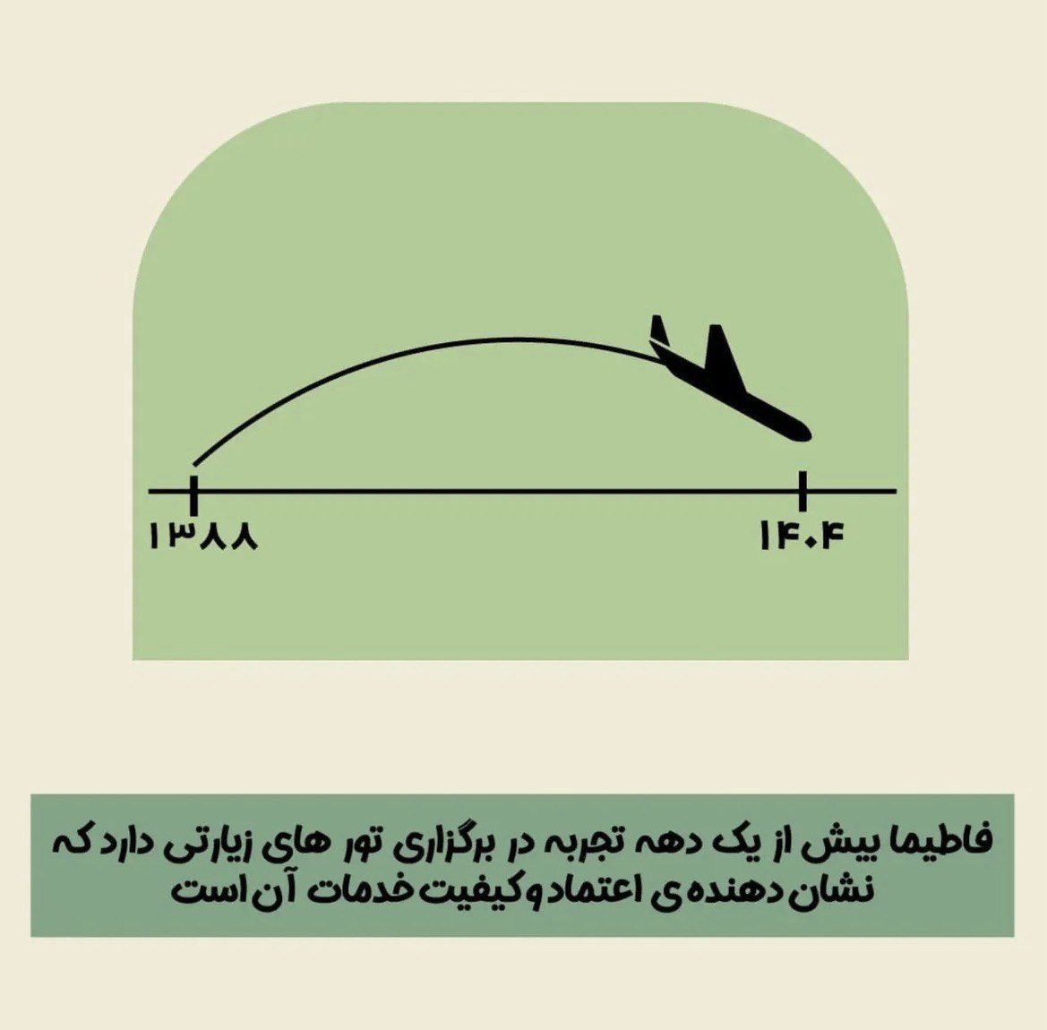 فاطیما بیش از پانزده سال تجربه در برگزاری تورهای زیارتی و سیاحتی بانوان دارد. این سابقه درخشان نشاندهندهی اعتماد، نظم و کیفیت بالای خدمات این مجموعه است. تجربهی طولانی فاطیما باعث شده تا همهی جزئیات سفر — از انتخاب اقامتگاه تا زمانبندی دقیق برنامهها — با دقت و حرفهایگری انجام شود تا زائران بدون هیچ دغدغهای سفر کنند.